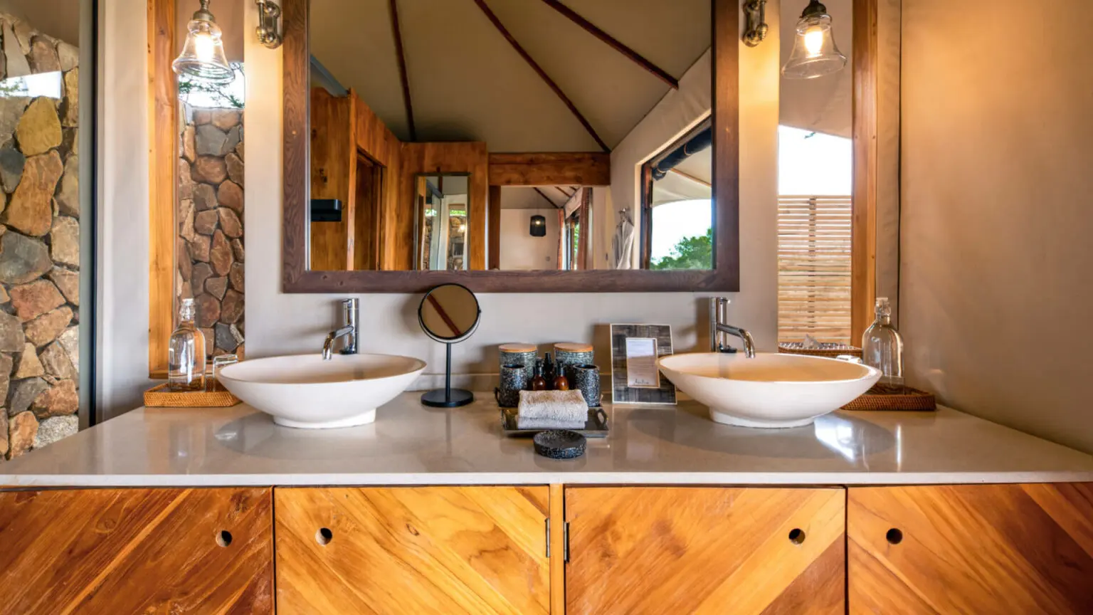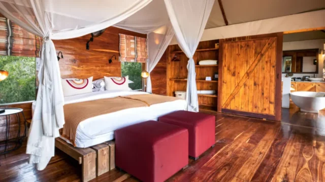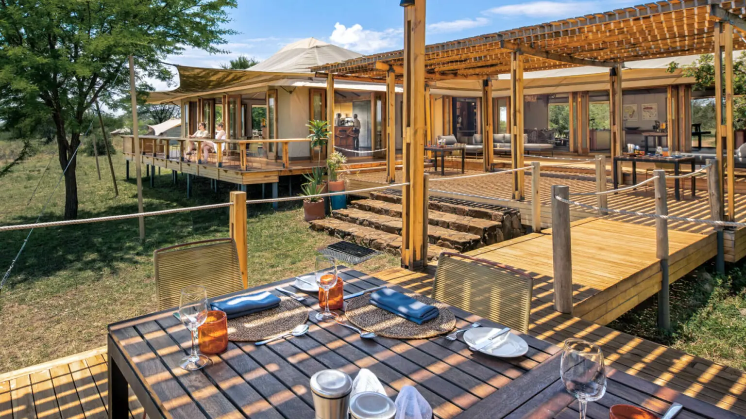 At Sayari Camp, the 15 spacious and bright tented suites radiate comfort, boasting mahogany floors and king or twin beds with fine linens and colourful cushions. The luxurious bathrooms feature walk-in showers, free standing tubs overlooking the savannahs, and a private outdoor shower on your deck. You can relax on your large wraparound veranda with a book or cold drink while spotting passing wildlife. Two Retreats opened in 2023, providing a private and exclusive experience for families and groups. Complete with a dedicated chef, an experienced and knowledgeable guide and private safari vehicle, The Retreats offer an elevated level of flexibility and luxury.
